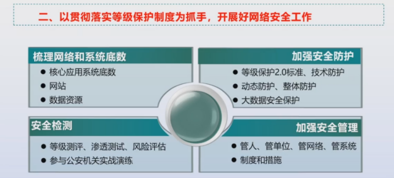 祝处对等保1.0升级等保2.0进行深度解读,更提到了公安部对于网络安全工作要求: