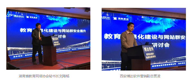 湖南省教育网络协会秘书长刘海韬、西安博达软件营销副总贾凌为本次会议致开场词,对于各大高校网络信息化建设的大咖及老师们的莅临表示衷心的感谢。