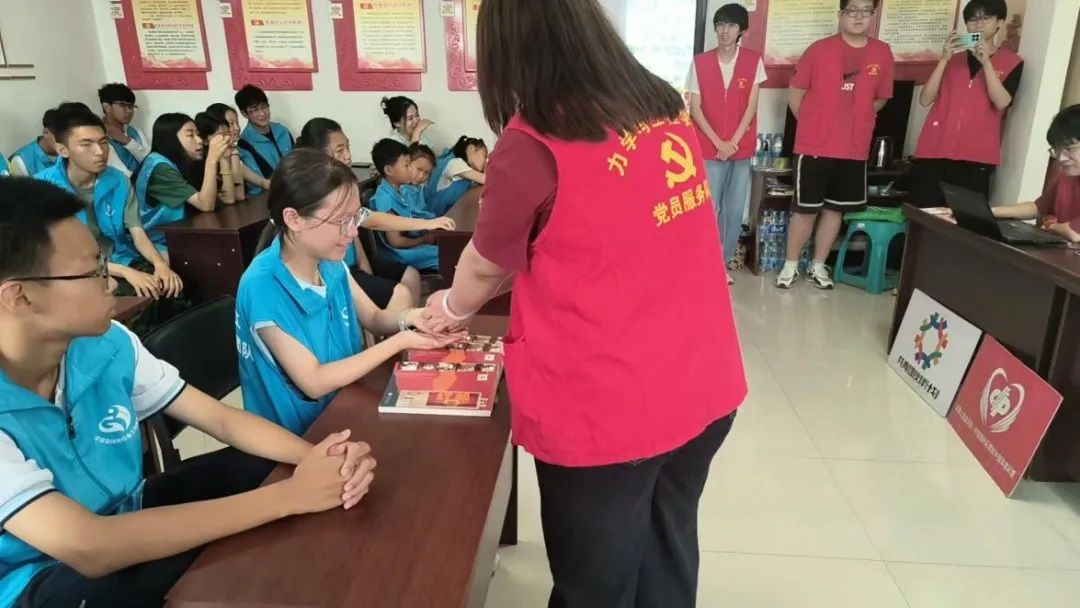 在大众社区,工力24-1班宣讲员以李大钊“赤旗世界”的呐喊开篇,串联伟大建党精神。张桂梅托举山区女孩的故事,令党员王阿姨动容:“这就是‘不负人民’!”。革命烽火与新时代抗洪抗疫的影像交织,诠释不变的担当。社区养老中心、垃圾分类设施,成为“增进民生福祉”的生动注脚。强民社区里,理力23-1班“红韵少年行”实践团队则为孩子们讲述中国共产党人精神图谱:科学家的孜孜探索、铁人王进喜“拼命拿下大油田”的豪情、沂蒙人民“最后一口粮做军粮”的奉献,在孩子心中种下红色的种子。