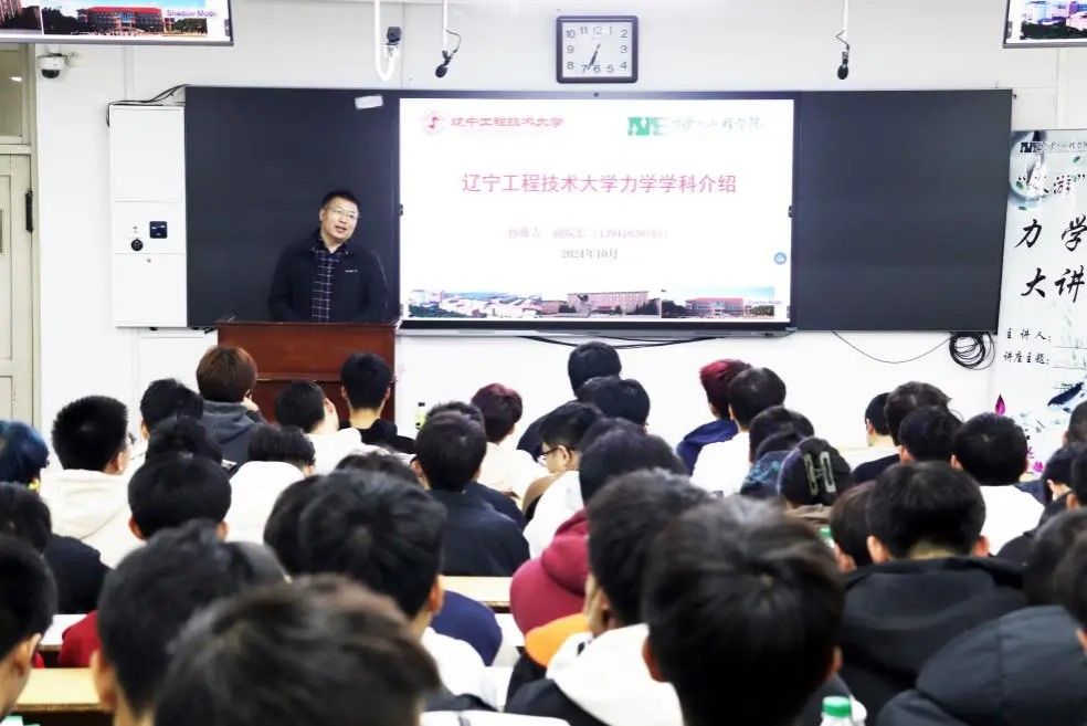 副院长孙维吉以《辽宁工程技术大学力学学科介绍》为题作专题授课,全体大一学生参加讲座。