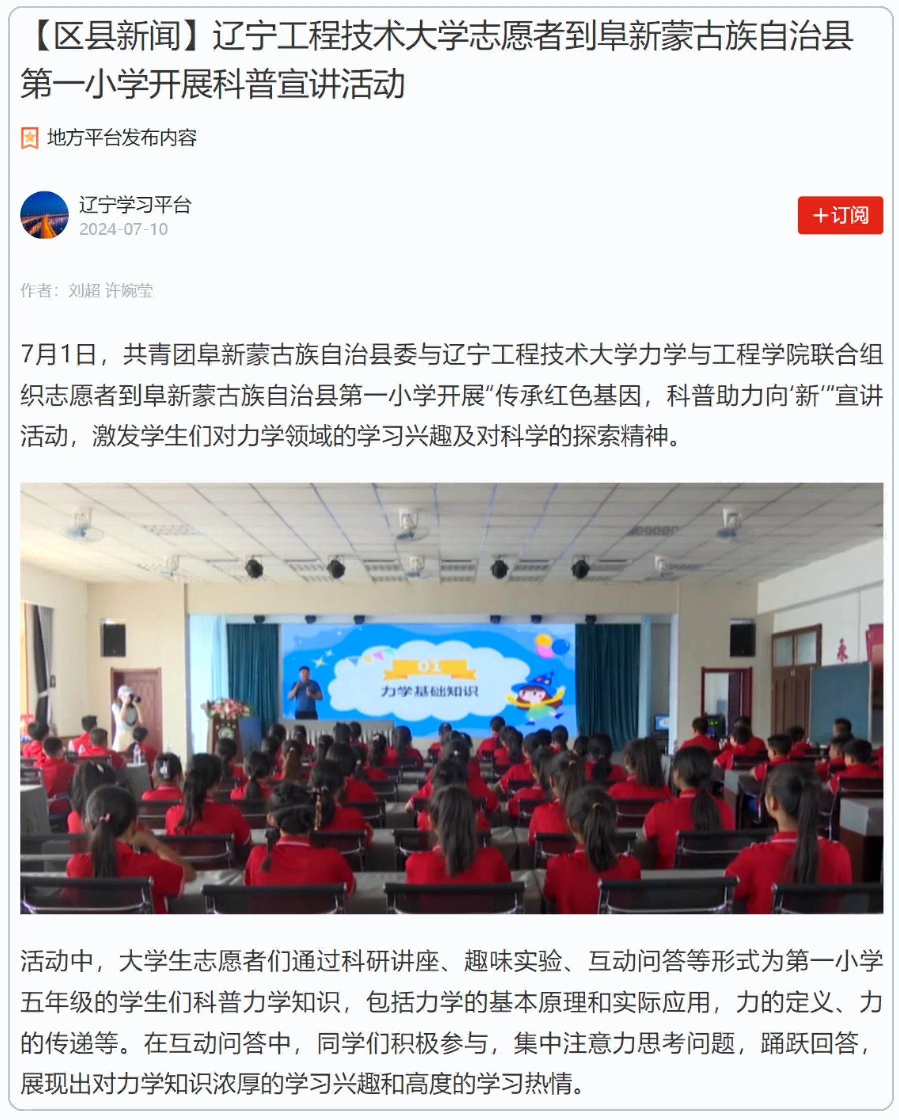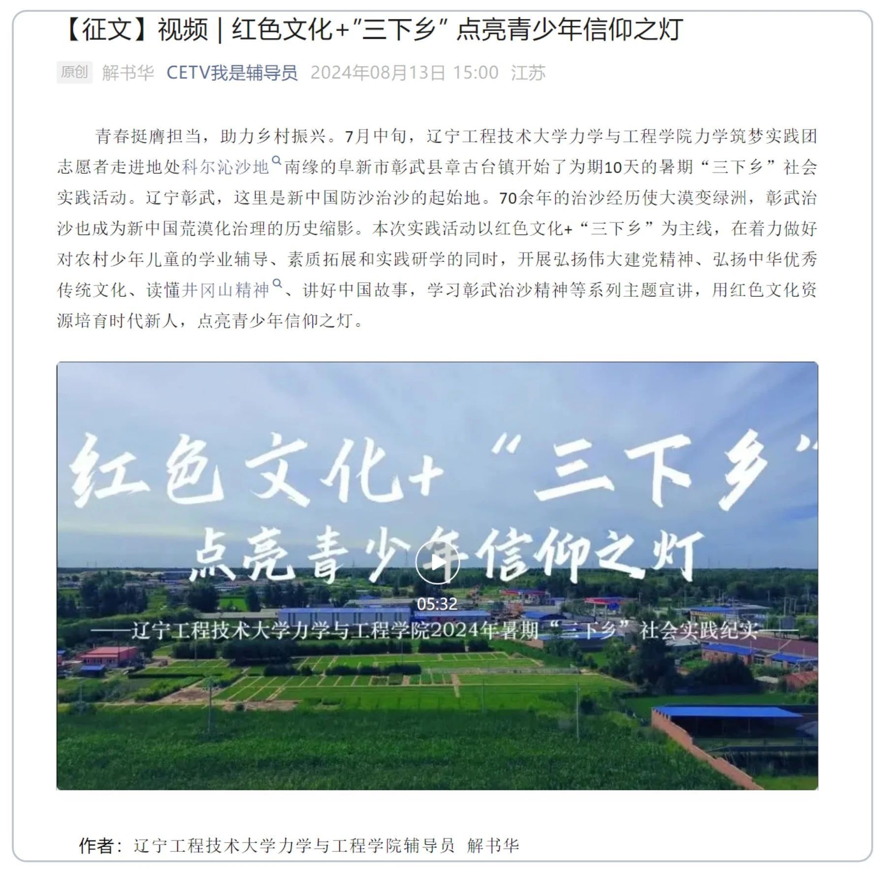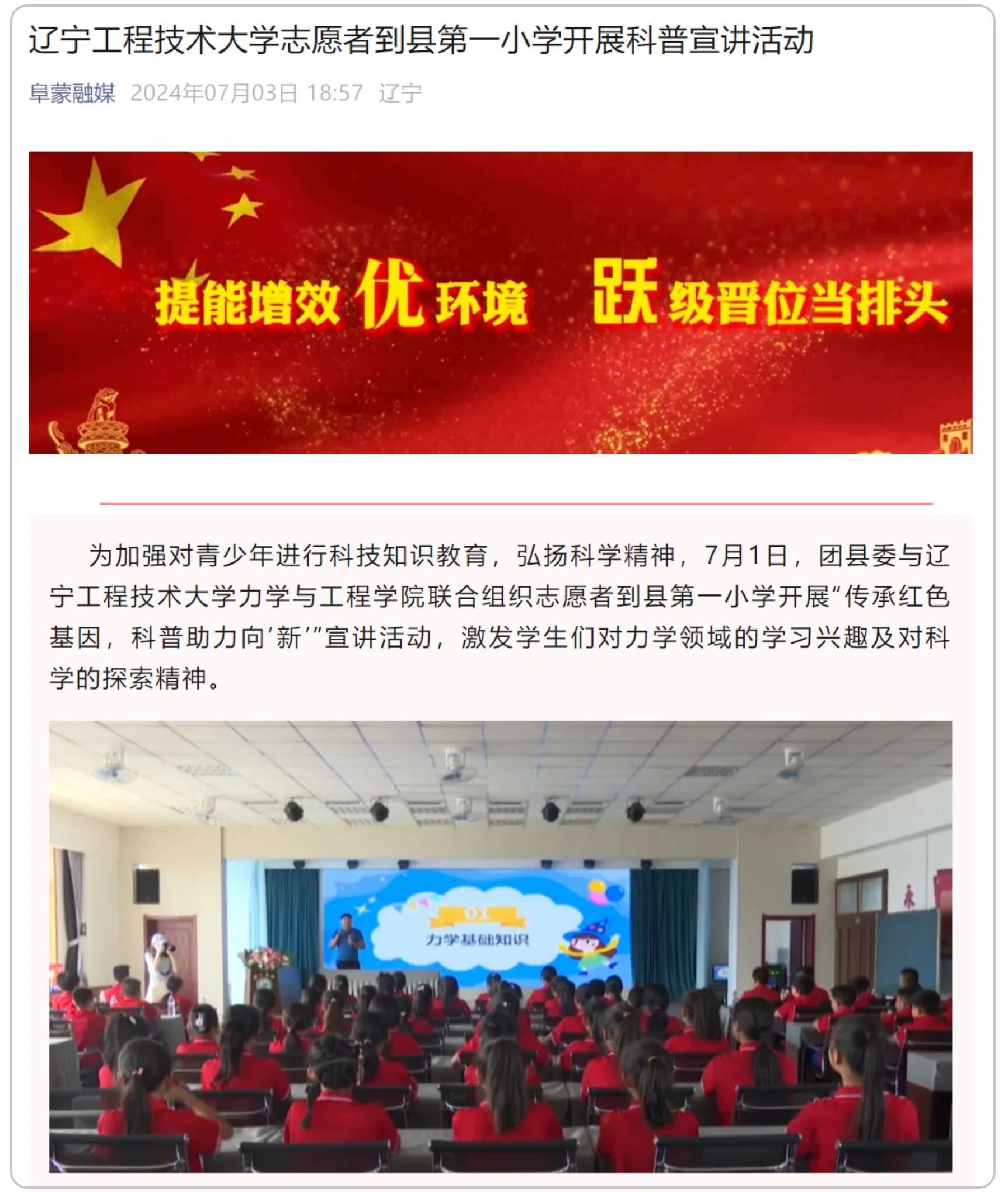 学子在暑期社会实践中的风采和成果。其中,力学筑梦实践团入选2024年团中央青年志愿者行动指导中心“七彩假期”志愿服务团,实践团走进地处科尔沁沙地南缘的阜新市彰武县章古台镇开展了为期10天的暑期“三下乡”社会实践活动。本次活动中,力学筑梦实践团李佳音同学作为代表分享了他们的实践经验与实践故事,详述了暑期社会实践自筹备至实施的全过程,畅谈活动中的经验举措与心得体会,让同学们在实践队员的切身经历中感受实践的魅力。