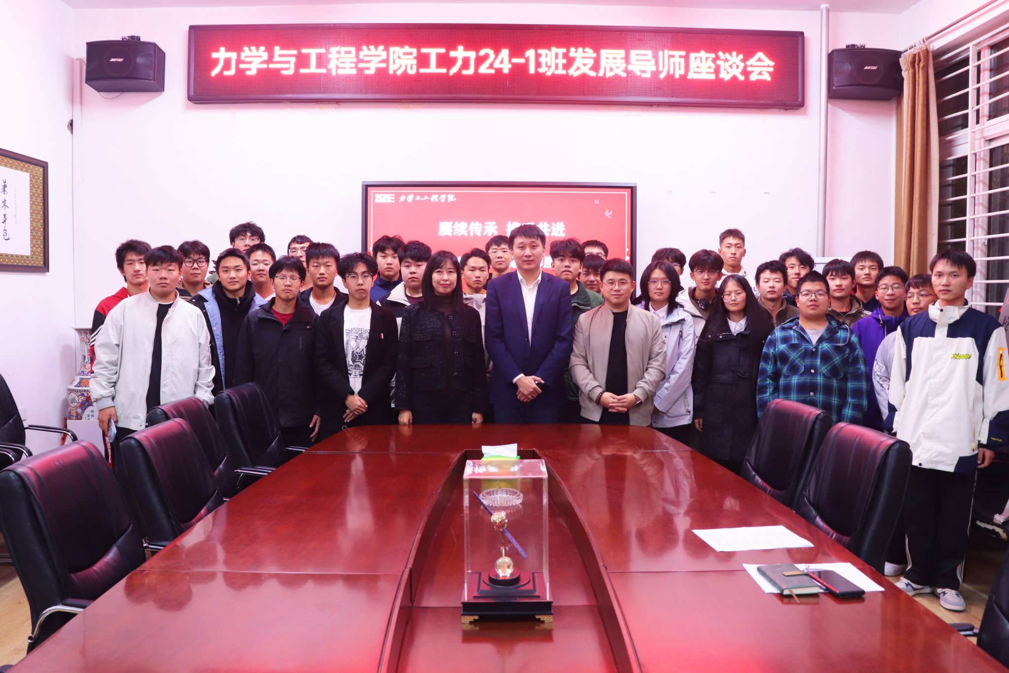 党委副书记王丽宏、发展导师刘明智出席会议,工力24-1班全体同学参会,会议由学生工作部主任王瑞斌主持。