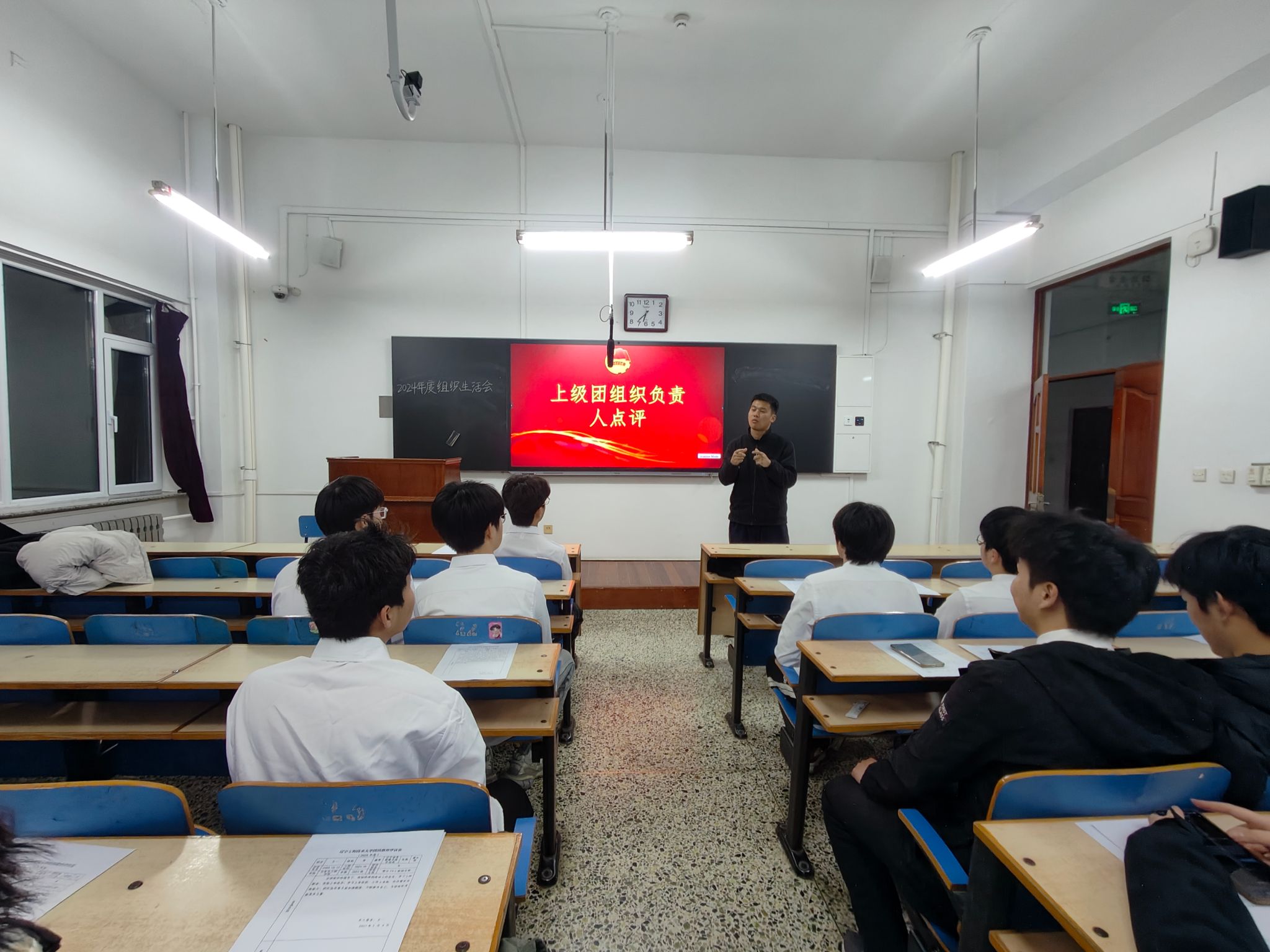 民主评议环节,大会采取个人自评、团员互评和组织评价相结合的方式开展了团员教育评议。会议接近尾声,由上级团组织负责人对此次会议进行评价和总结,并对团支部的规划作出建议。大会最后,全体参会人员重温入团誓词。