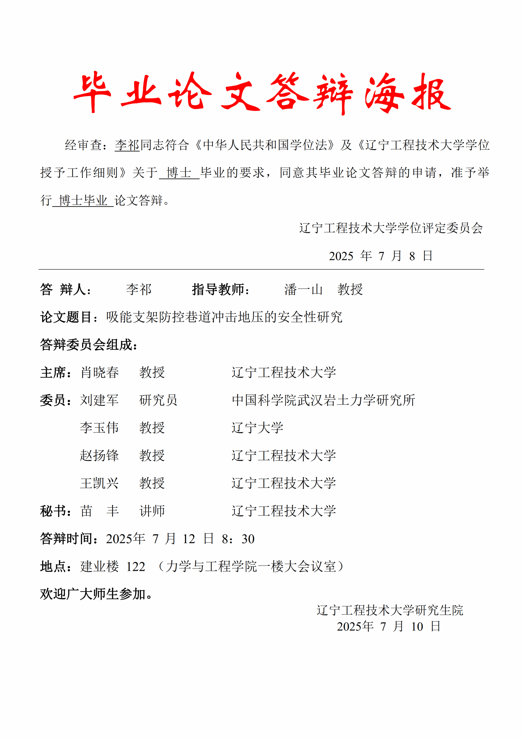 2025年春夏学期博士毕业论文答辩公告(一)