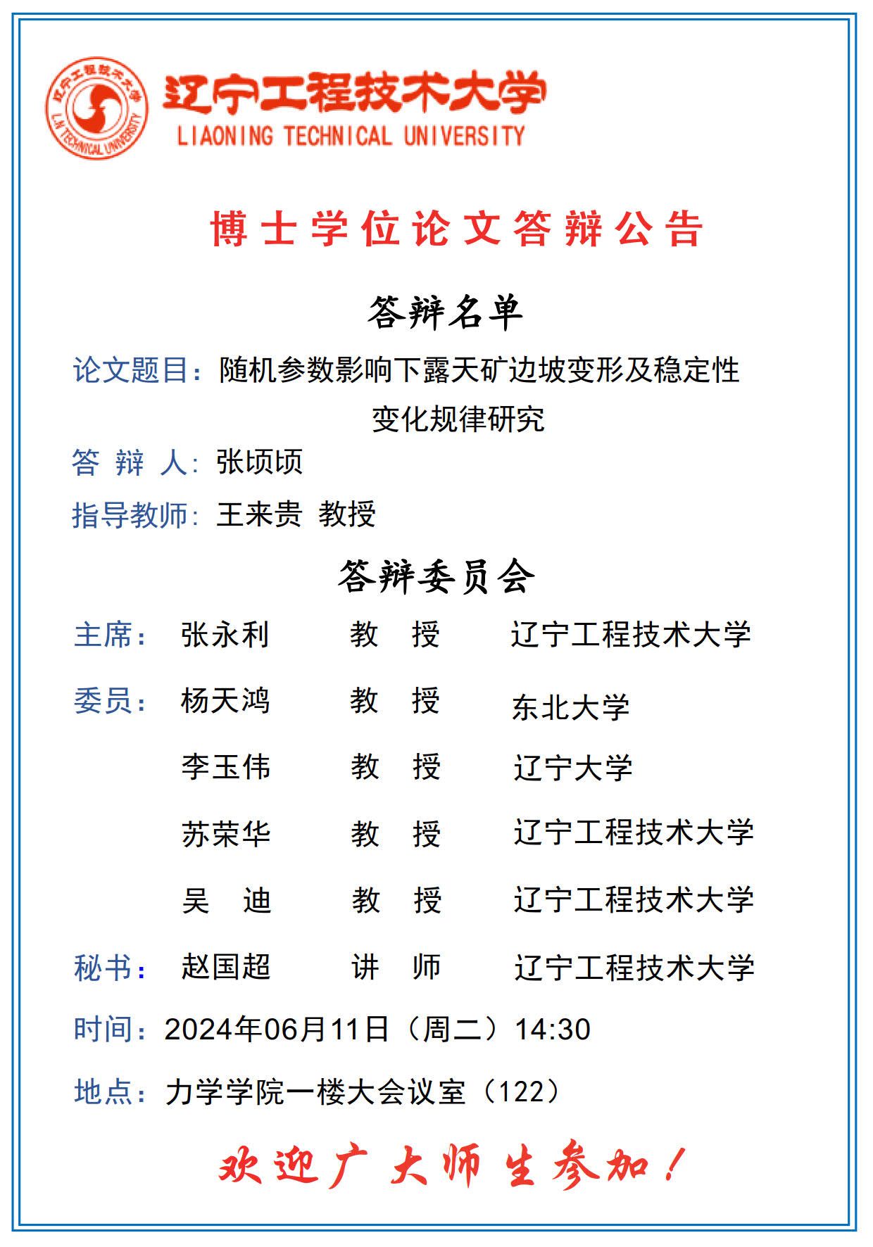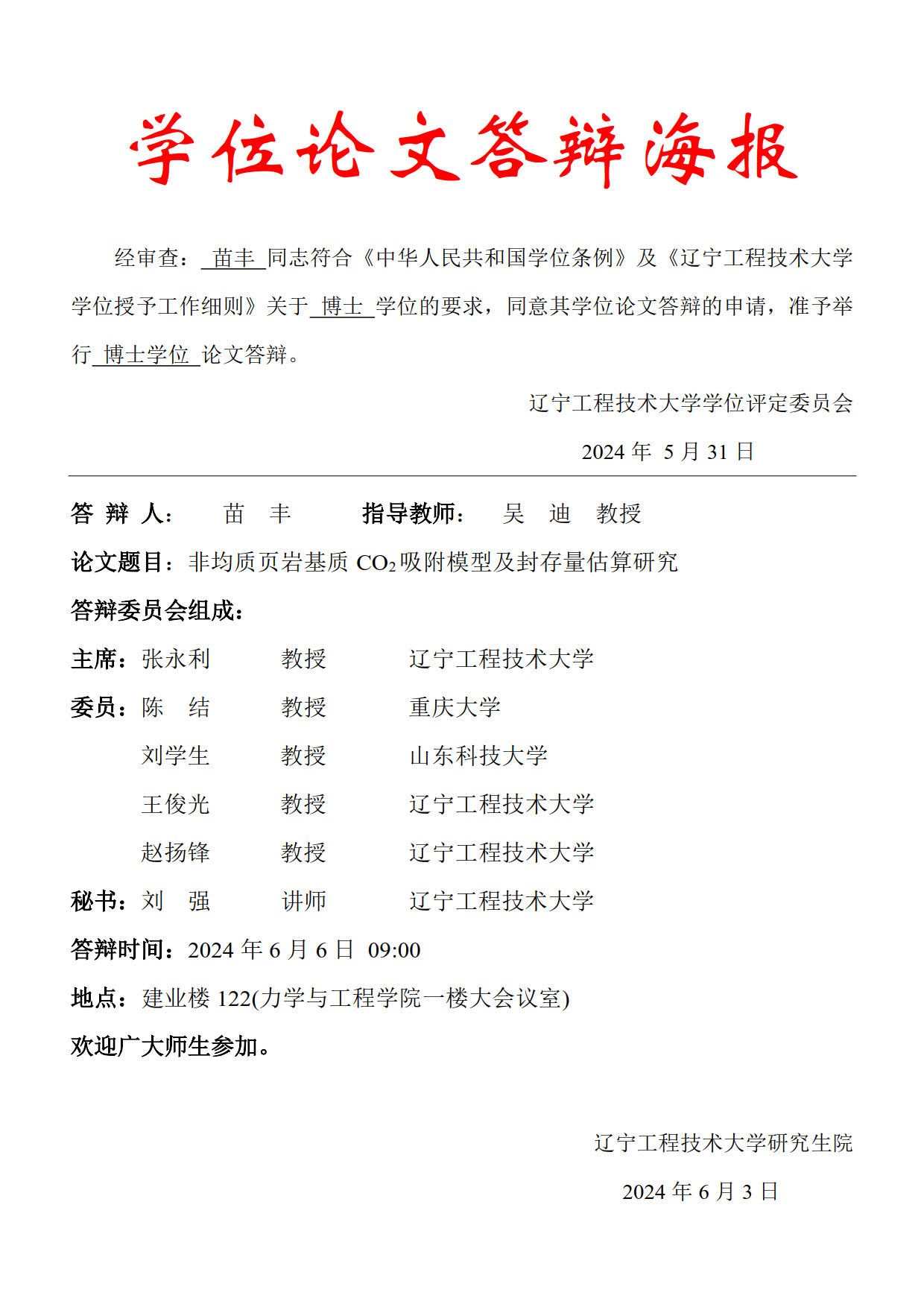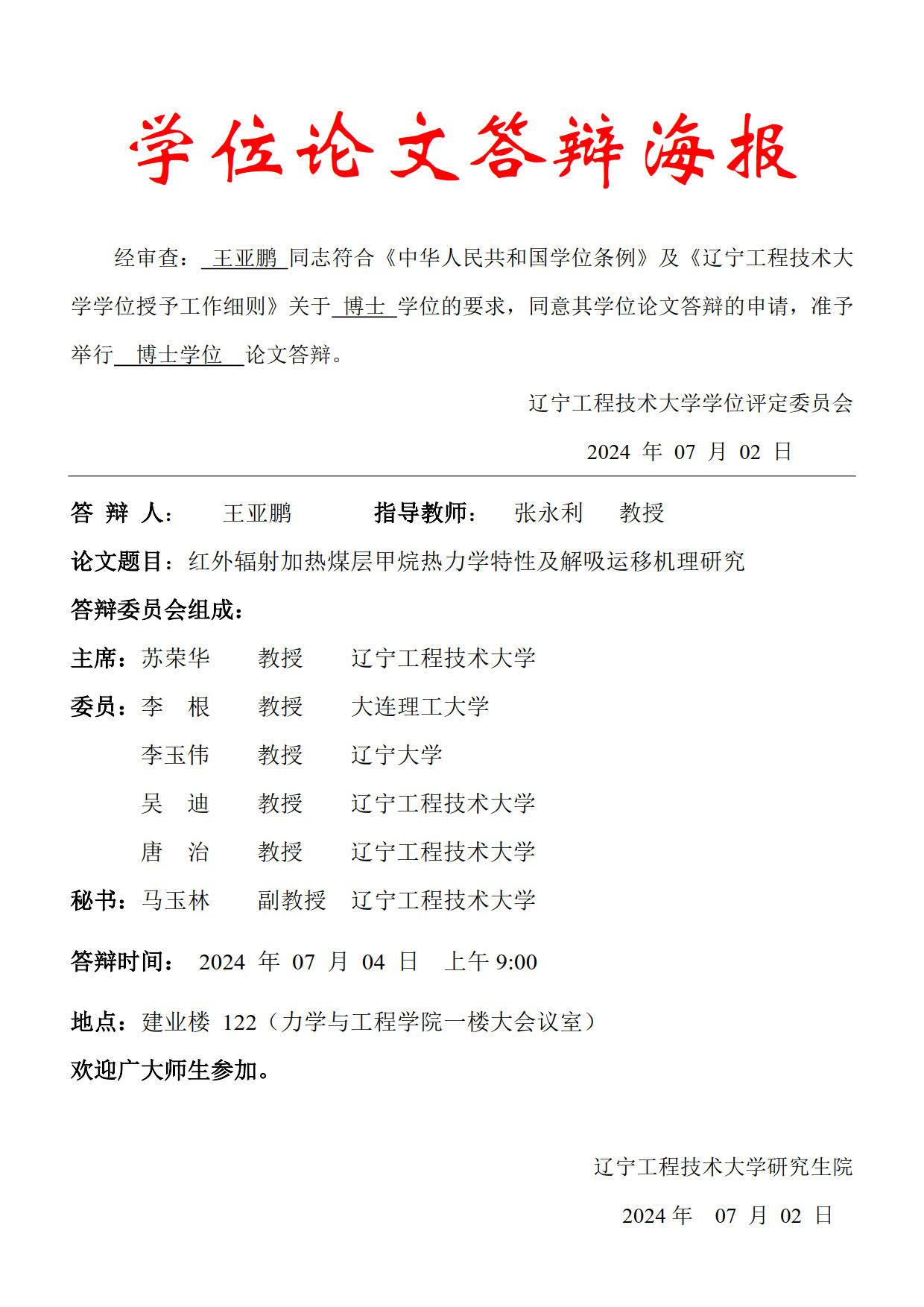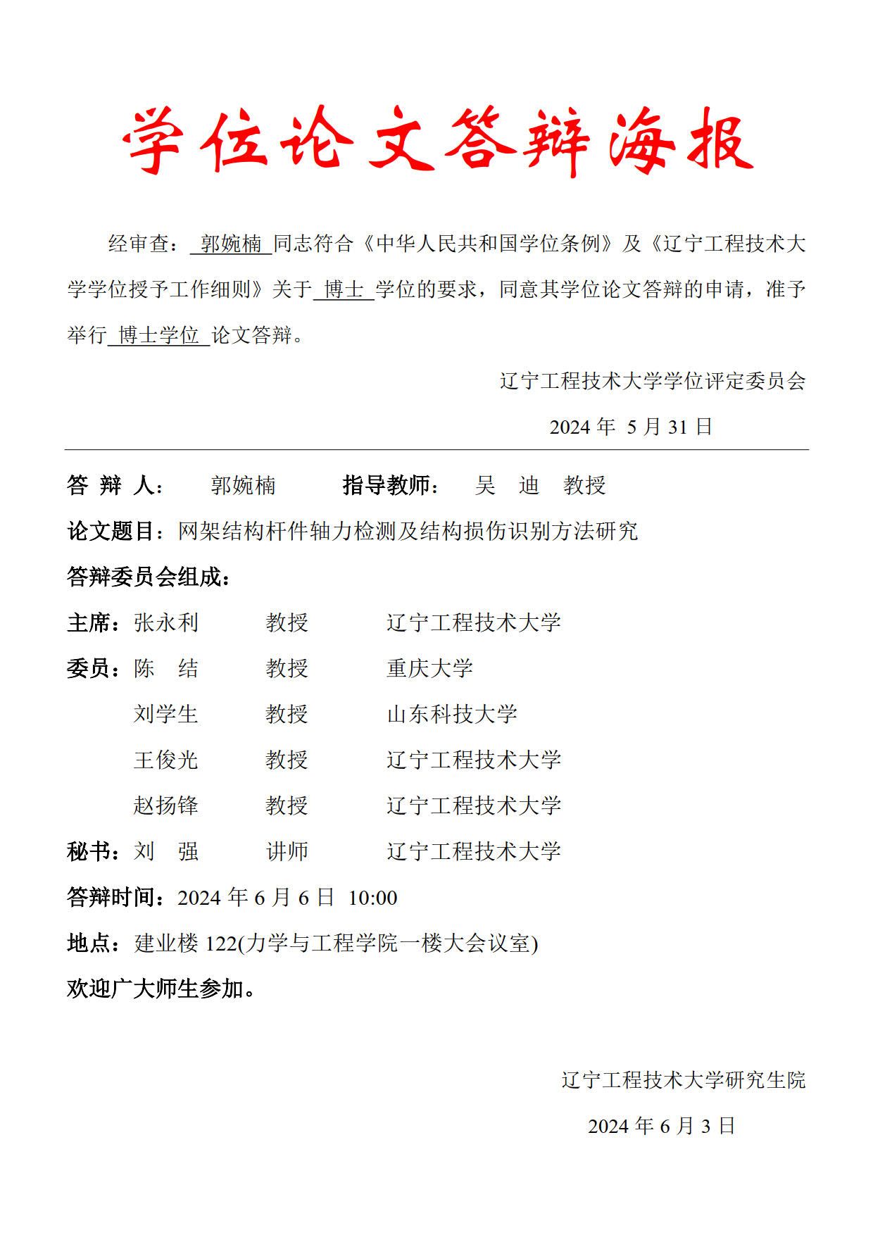 2024年春夏学期博士学位论文答辩公告