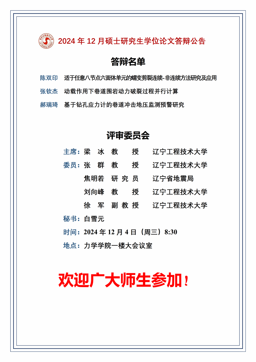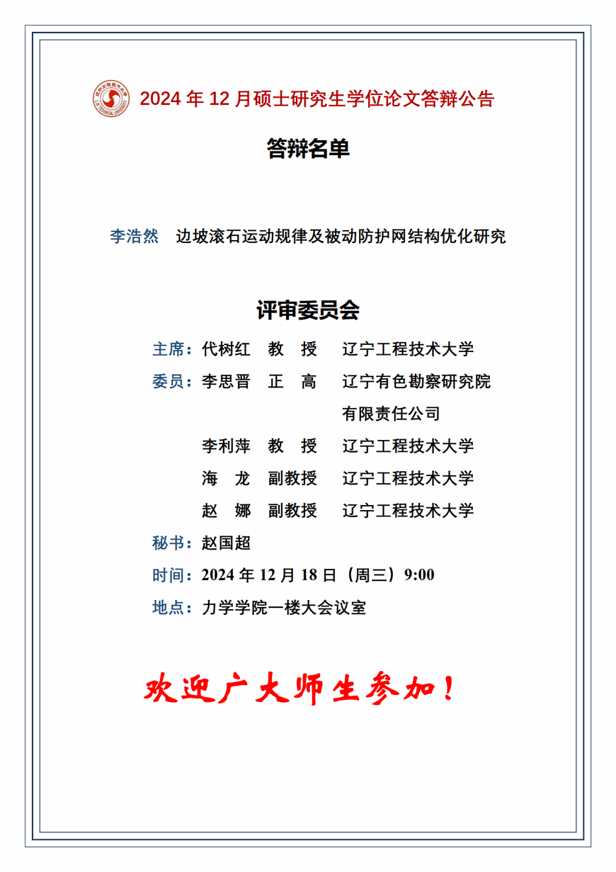 2024年秋冬学期硕士学位论文答辩公告