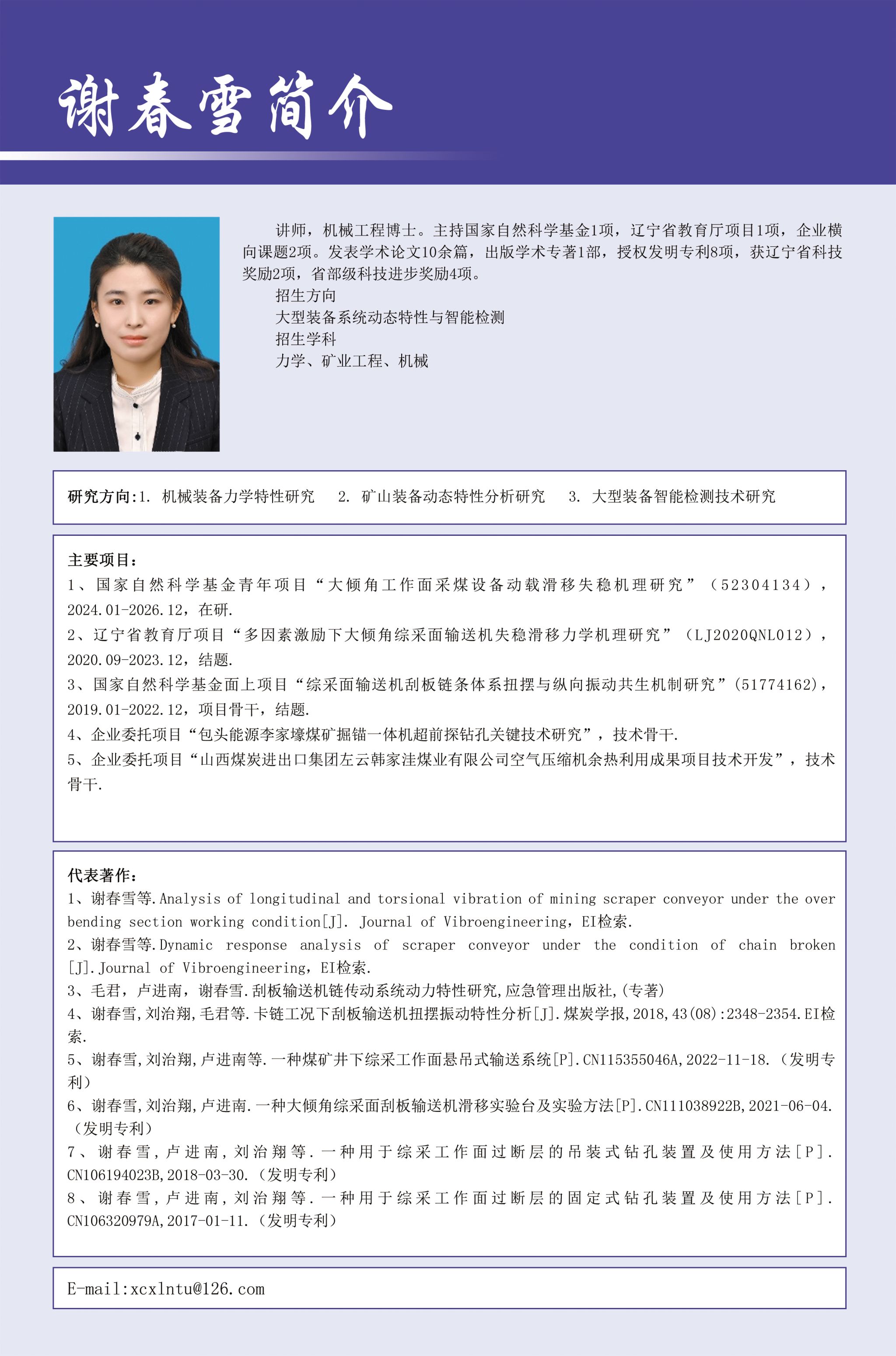 谢春雪 博士 讲师 硕士