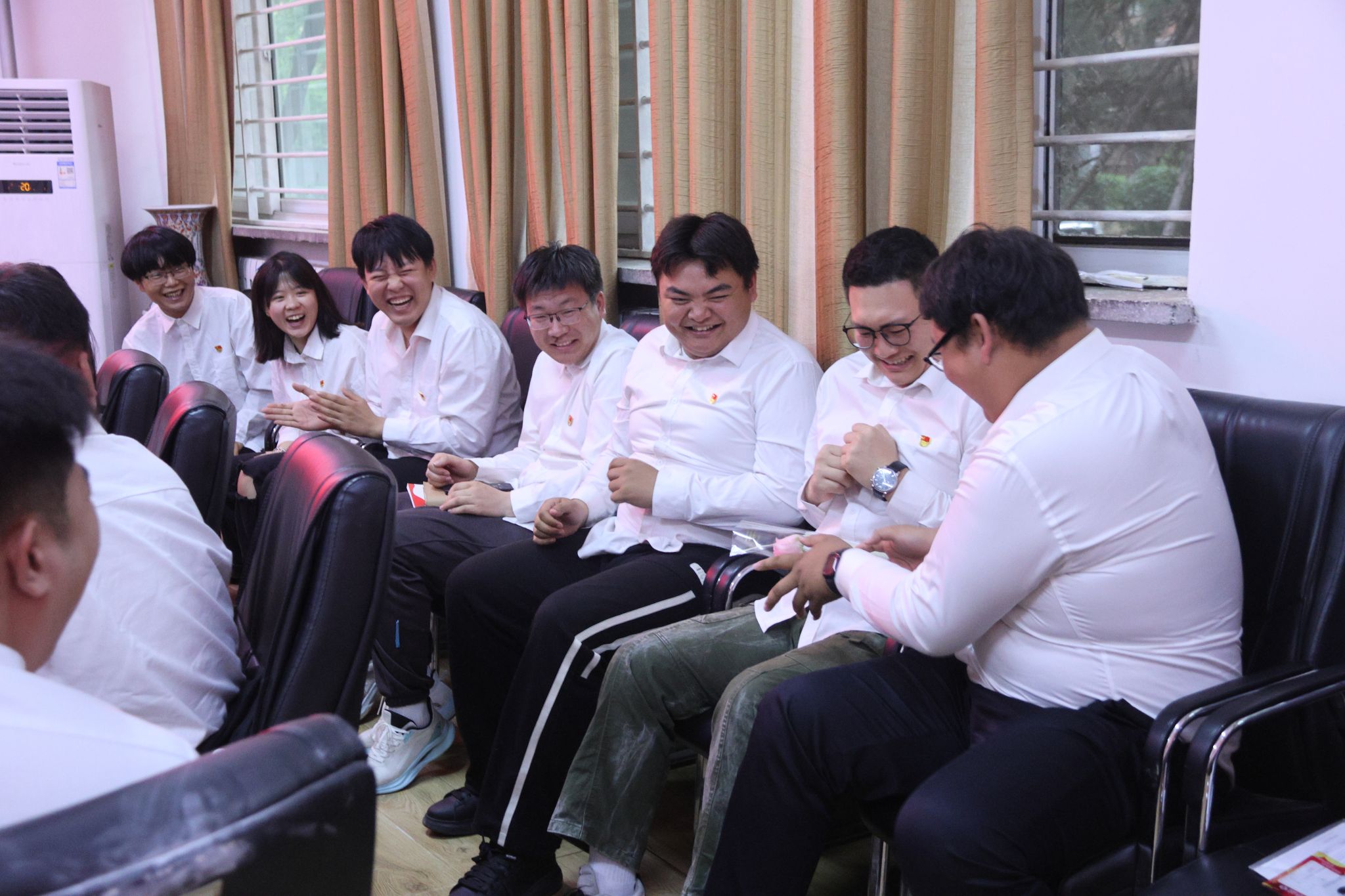 毕业生党员的蛋糕被缓缓推至会议室,在甜蜜的氛围中,同志们铭记入党初心,展望美好未来。