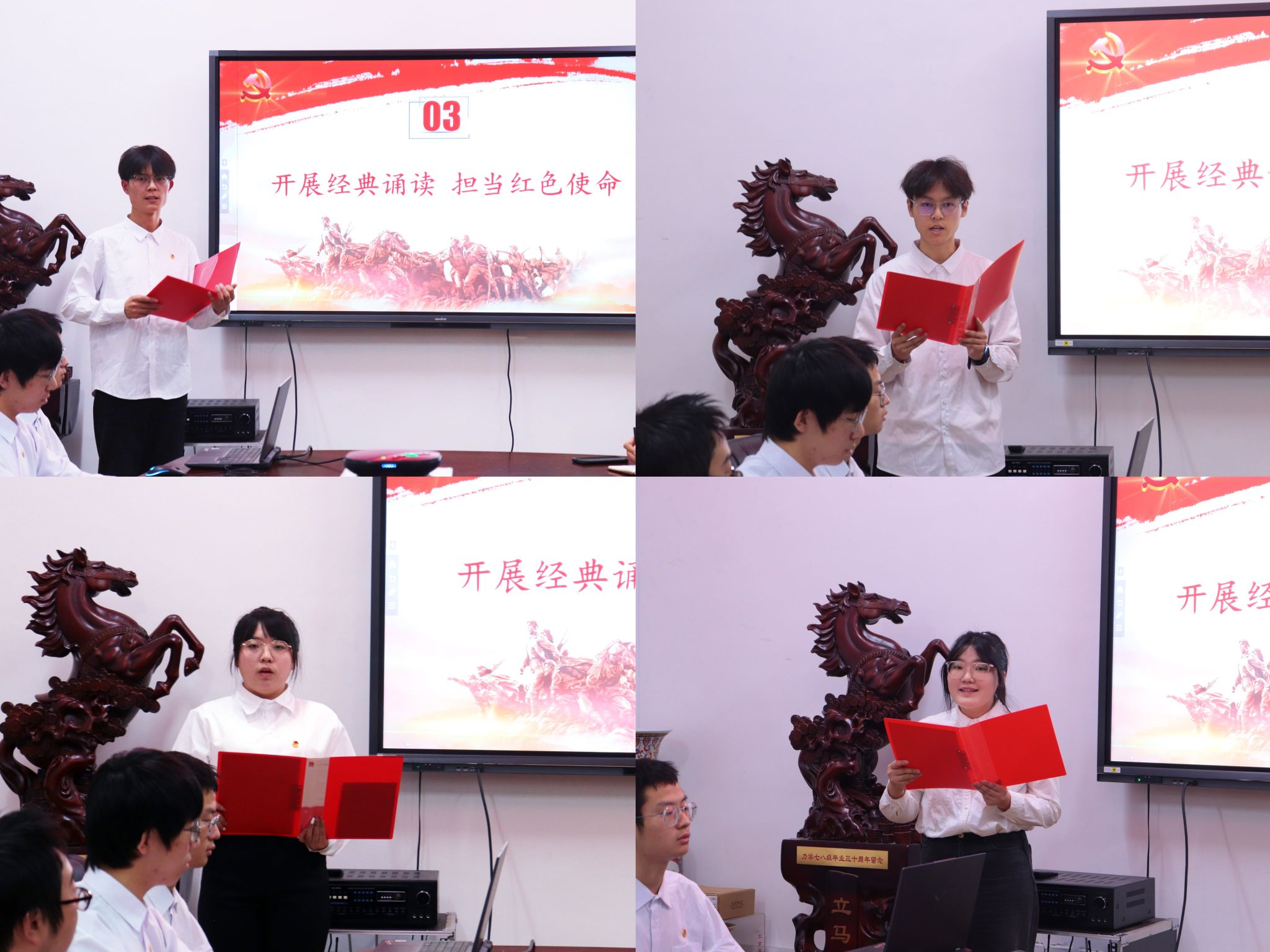 活动第三项,开展经典诵读,担当红色使命。徐思瑶等4名学生诵读了《七律·长征》、《清平乐·六盘山》、《江城子·忆长征》、《长征颂歌》等长征主题经典作品。他们仿佛是历史的讲述者,通过抑扬顿挫的声音、真诚投入的表情,将红军长征的艰苦历程栩栩如生地呈现在大家面前,让那些尘封在历史中的故事重新鲜活起来,让革命先辈们的精神在新时代的青年心中绽放光芒。