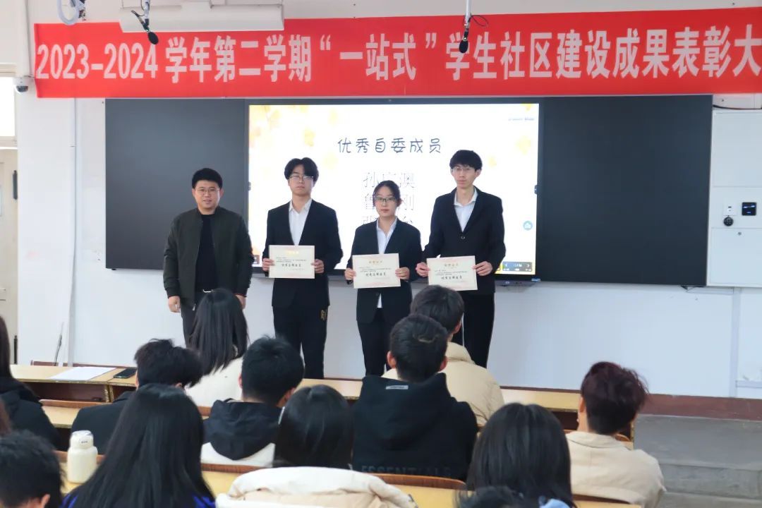 会议中,主持人介绍了上学期UU娱乐城 “一站式”学生社区建设过程中取得的成绩,对安全文明寝室需要注意的事项和UU娱乐城 查寝标准进行了细致的解读,通过分享优秀寝室的管理经验,树立典型榜样,号召同学们向榜样学习,向优秀迈进。并现场宣读“安全文明寝室”“优秀自委会成员”名单,由王丽宏老师和王瑞斌老师分别为“安全文明寝室”“优秀自委会成员”颁发流动红旗和奖状。