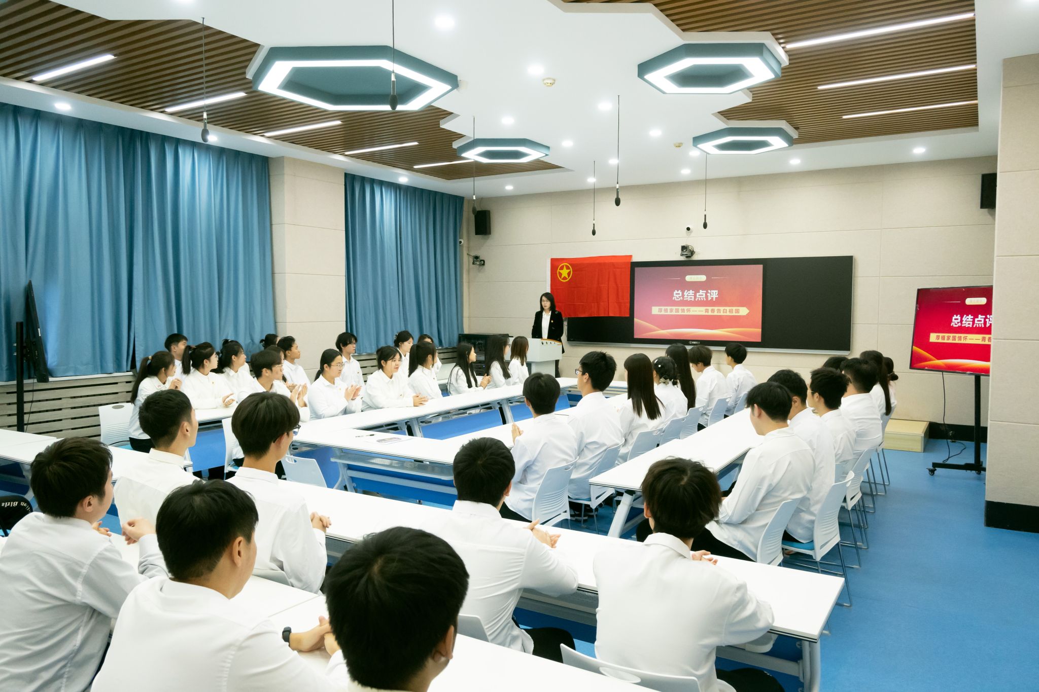 致力于开展形式多样的主题团日活动,培养青年团员爱党、爱国、爱校的家国情怀。本次“厚植家国情怀 青春告白祖国”示范主题团日活动的成功举办,进一步提高了广大团员的思想政治觉悟,同学们以实际行动展现青春作为,彰显青春风采,向新中国成立75周年、建校75周年献礼。