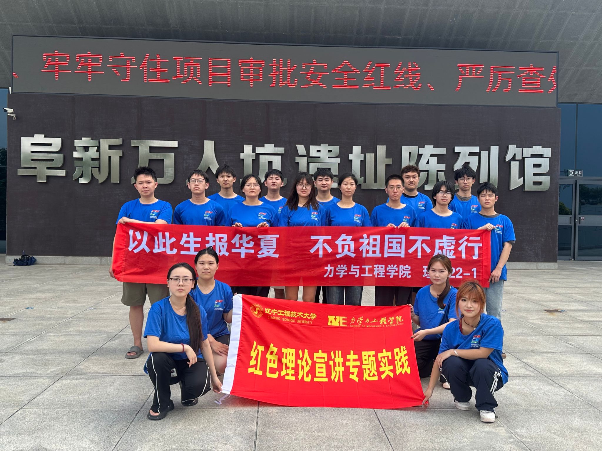 理论与应用力学22-1班在阜新万人坑死难矿工纪念馆进行暑期社会实践活动,众多同学积极参与。
