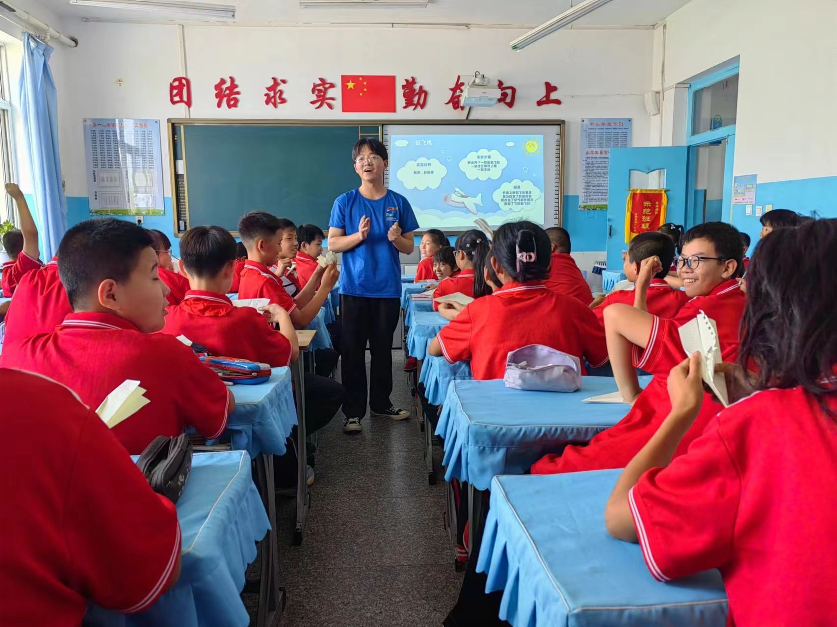 工力22-2班力学青春宣讲团走进了阜新蒙古族自治县第一小学,开展了一场以“青春宣讲 助力梦想”为主题的暑期社会实践活动。此次活动旨在传播力学科普知识,传承红色精神,激发学生的科学兴趣和爱国情怀。